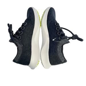 Women's Lace-Up Wool Running Shoes by Allbirds, WDM, US Size 7, UK 4 - 4.5, EU 37. Gray in Color, Neon yellow and White Soles. Sneaker, Lace- up, Cushioning, Casual, Comfortable, Breathable, Wool all season Running Sporty shoes, Everyday Sneakers, Travel, Leisure.