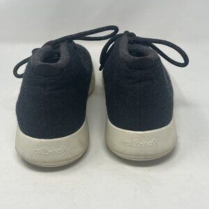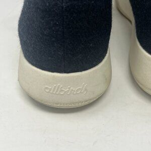 All Birds Wool Runner Up Mizzles, men's size 12. High top sneaker style. Lace up. Tonal laces. Dark navy wool exterior with grey undertones. Gently worn, in very good used condition. Some discoloration on soles, and minor creasing over toes. See photos.