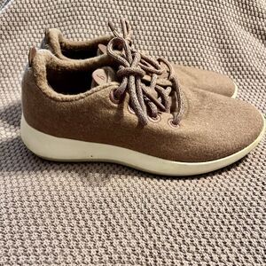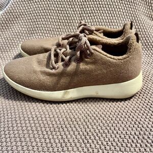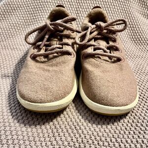 The Allbirds Wool Runners in women's size 8 are stylish and comfortable athletic sneakers designed for activities like walking, running, and jogging. Made with wool lining and outsole, these lace-up shoes are suitable for all seasons and occasions, whether it's for casual wear or activewear. With a solid mauve color and rubber accents, these sneakers feature a logo and a low top shoe shaft style, making them a versatile choice for any wardrobe. Crafted in South Korea, these Allbirds Wool Runners offer a combination of comfort, style, and functionality for women on the go.