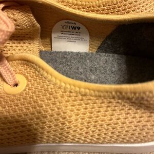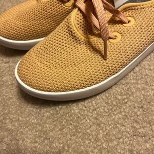 Comfortable Allbirds sneakers in a rich mustard hue. Ideal for everyday wear.