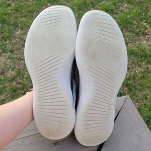 Show signs of normal wear. Still look great. The tread shows some wear on it (pictured).