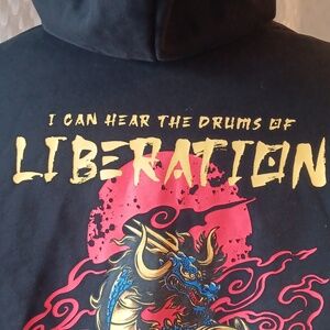Allegory Hoodie Mens Black Liberation Graphic Hoodie Size L