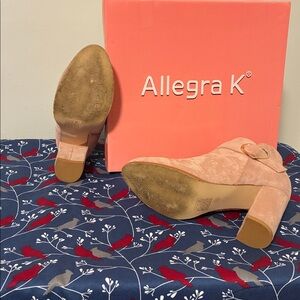 Chic blush ankle boots featuring a charming heart accent. Ideal for adding a playful touch to your outfit. Worn once to an outdoor wedding.