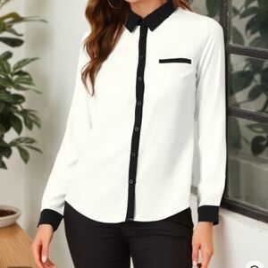 Contrast color, 100% polyester blouse. Great for the office, date, or church. Selling on their website currently. Fits size 8/10, p2p flat 20".