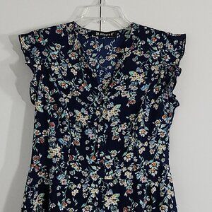 Allegra K Dress Size S Floral Short Sleeves Round Neck Flowy Spring Summer