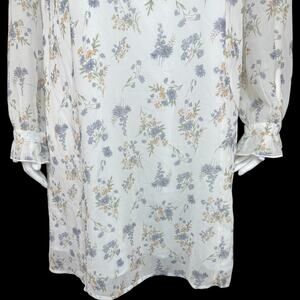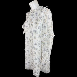 Allegra K Floral Ruffle Long Sleeve Mini Dress White Lined L Feminine Romantic