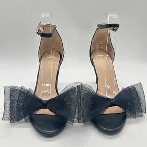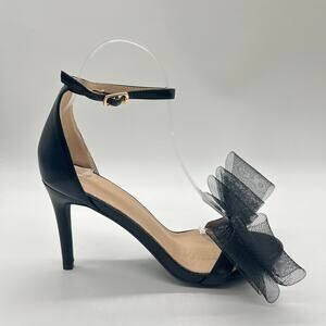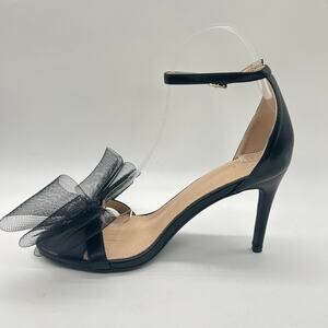 Allegra K Heels Sandals Women 8 Black Mesh Bow Pointed Toe Slip On Dressy New