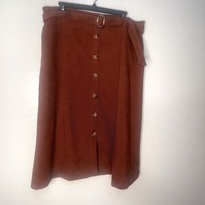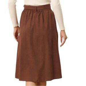 Allegra K High Waist Button Front Belted Corduroy A-Line Midi Skirt