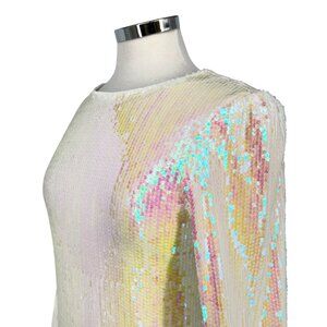 Allegra K Iridescent Sequin Long Sleeve Mini Dress White Size Medium NWT