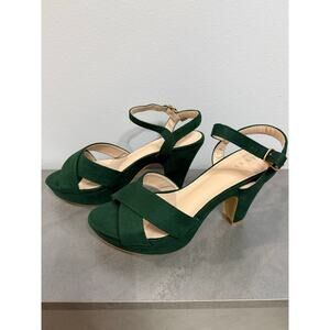 Allegra K NEW size 8.5 emerald green strap ankle platform slingback chunky heel open toe sandal $55 retail, holiday, christmas, event, prom, formal. homecoming, event, Step out in style with these gorgeous Allegra K platform slingback sandals! These shoes are brand new and ready to turn heads.