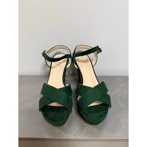 Allegra K NEW 8.5 emerald green strap platform slingback chunky heel open toe