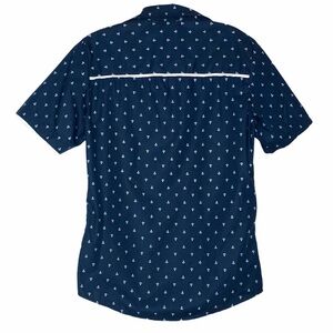 Allegra K Nautical Anchor Print Mens Button Down Navy Shirt Size 34