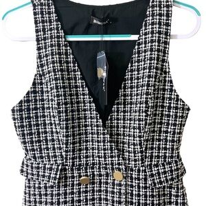 Allegra K Pinafore Mini Jumper School Girl Plaid Double Breast Y2K Preppy Small