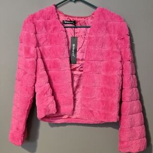 Allegra K Pink Faux Fur Teddy Jacket #727