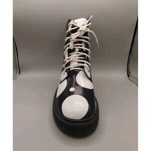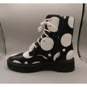 Allegra K Polka Dot Platform Combat Boots Women's Size 6 Black White Zip Up