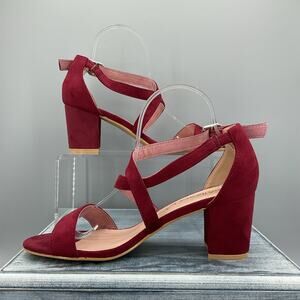 These Allegra K heels feature a striking red hue and a chic strappy design, perfect for adding a touch of elegance to any outfit. The block heel provides stability and comfort, making them ideal for both casual and formal occasions. Crafted with attention to detail, these shoes are a versatile addition to any wardrobe.