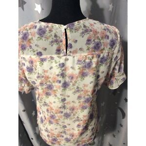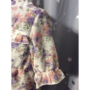 Allegra K Ruffled Floral Gathered Sleeves Romantic Top Large L Women's