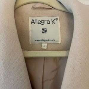 New Without Tags. This cream-colored coat will keep you cozy and stylish from winter into spring. The large shawl collar and lapel are both on trend and timeless. Large front pockets help you store gloves or keep you hands warm. The removable belt offers flexibility to switch between a wrap look or button closure.