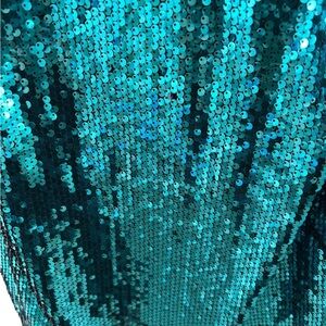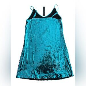 Dazzling teal mini dress with sequins. Thin straps. Ideal for celebrations.