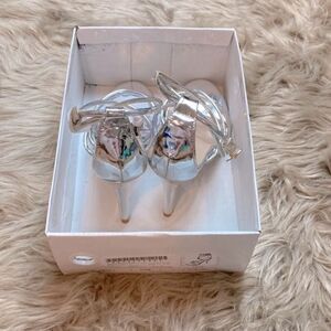 Allegra K Silver Open Toe Ankle Strappy Stiletto Heel Sandals Holiday Party Shoe