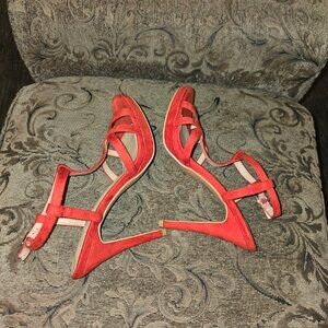 Allegra K Strappy Platform Heels Red Stiletto Heel Sandals SZ 8