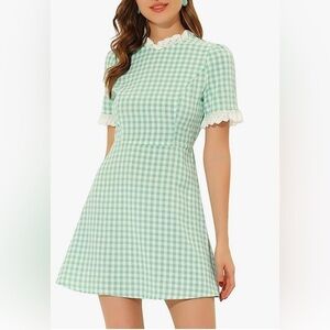 Allegra K Summer Ruffle Neck Short Sleeve Check Gingham Dress Size 1X