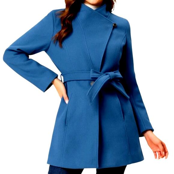 Allegra K Turquoise Blue Belted Single Breasted Trench Coat Mid Length S Chic