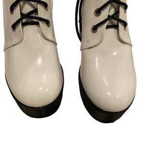 Allegra K White Lace Up/Zipper Platform Boots Size 7.5