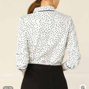 Chic blouse with black polka dots. Elegant and versatile style. Size S fits a 4/6, p2p flat is 18"