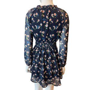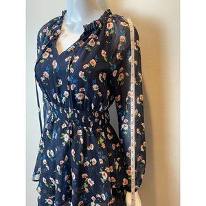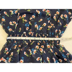 Allegra K Women Floral Chiffon Mini Dress Smocked Waist Ruffle Layers Blue SZ XS