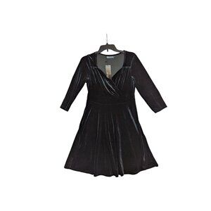 Allegra K Womens Black Velvet Wrap V-Neck Dress 3/4 Sleeves Elegant Party Wear