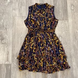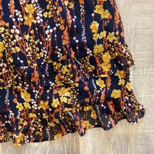 Allegra K Floral Printed, Button Placket, Smocked Waist, Sleeveless, Tiered Ruffled Hem, Lined. Bursting with charm, this mini dress is trimmed with a frilly flouncy ruffled hem. Navy blue with yellow, orange and white floral print. NWT. Fabric Type: 100% Polyester Care Instructions: Machine Wash Closure Type: Button to waist Neck Style: Round Neck Occasions: Weekend Gathering, School, Holiday, Vacation, Party, Daily wear, etc.