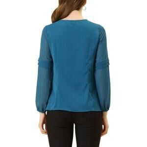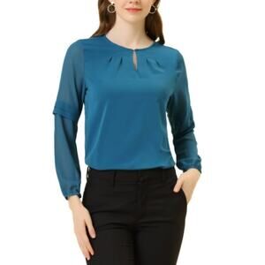 Allegra K Women's Office Long Sleeves Keyhole Neck Elegant Blouse XL Lake Blue