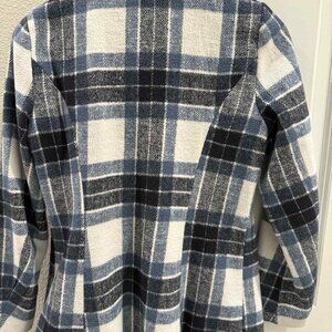 Women's Buffalo Checks Shacket Button Down Peter Pan Collar Long Winter Plaid Coat. Worn ones. In good condition.
