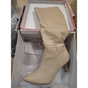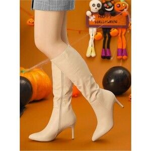 Allegra K Women's Pointed Toe Stiletto Heels Knee High Boots Nude Size 6.5 . Condition is Pre-owned. Shipped with USPS Ground Advantage.