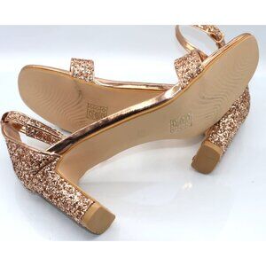 Allegra K Womens Rose Gold Glitter Ankle Strap Chunky Heel Sandals Size 8.5