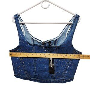 This Allegra K women's crop top presents a unique blend of edgy style and feminine charm. Crafted from denim, it features an array of delicate studs that add a touch of sparkle while maintaining a rugged look. The back zipper closure ensures convenience and adds a modern twist. • Zipper closure at the back • Studded detailing on denim • Medium size fit • Sleeveless design • Cropped length • Brand tag attached Armpit to armpit = 16.5 inches @2484morales