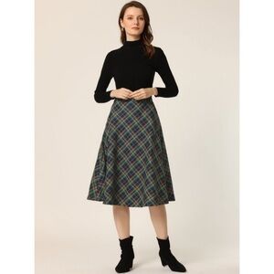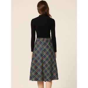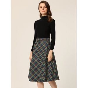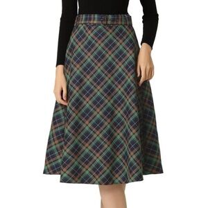 Allegra K Women's Tartan Plaid High Waist Belted Vintage A-Line Midi Skirt new