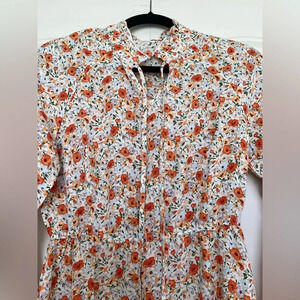 Allegra K Women's Tie Neck Long Sleeve Elastic Waist Ruffle Hem Floral Dress