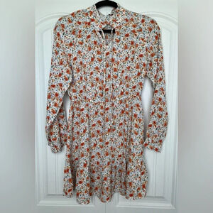 Long Sleeves, Bow Tie Neck, Ruffle Hem, Elastic Waist, A Line Dress