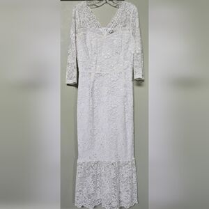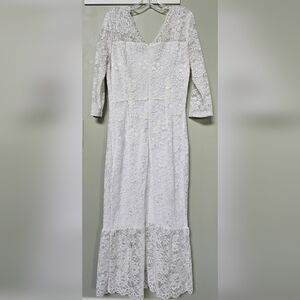 Allegra K Women's V Neck 3/4 Sleeve Lace Ruffle Bodycon Dress sz XS WHITE