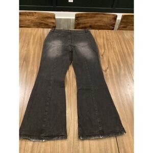 Allegra K retro Flared Stretch High Waist Dark Wash black Denim Jeans Large NWT