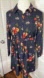 New Allegra-K long sleeve floral polka dot button navy dress. Blue midi long sleeve shirt dress. A beautiful ditsy liberty floral print of coral cardinal red, orange, purple, frog green and a marigold mustard 24K gold color. Also a peach, tan, jewel green and white. Small cute white polka dots on this dark navy background. Beautiful matching belt sash. Boho cottagecore feel. Lovely dress and new without tags.