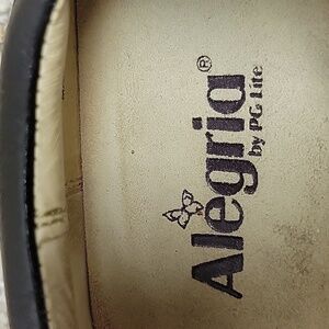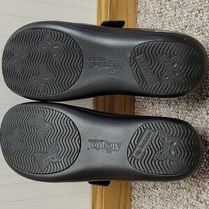 Women's black leather Alegria Khloe slip resistant slip on velcro buckle shoes sz 38 (US 7.5-8). leather lining, rubber soles.(S6-014)