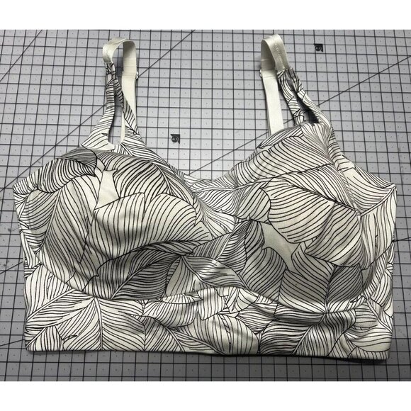 Beautiful non wired sport bra in 38DDD, in white palm print.