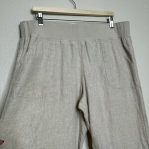 Allen Allen Linen Pants XL Cropped Capri Beige Pull On Wide Leg Casual Beach