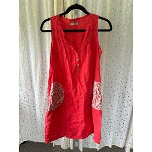 Allen Allen NWOT 100% Linen Fold Mix Floral Solid Print Midi Dress Pockets S