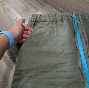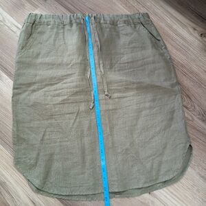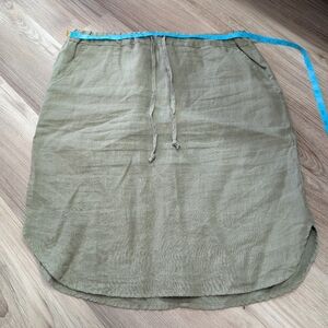 Allen Allen, Women's Medium, Olive Green 100% Linen Skirt, Made In USA, Pockets