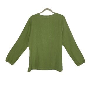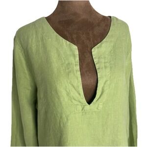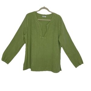 allen allen Women's size XL Green Linen Tunic Beach Coastal Popover V-Neck Long Sleeve pullover