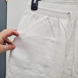 Allen Allen Women's Y2K White Pull On 100% Linen Causal Leg Resort Wear Pants XS